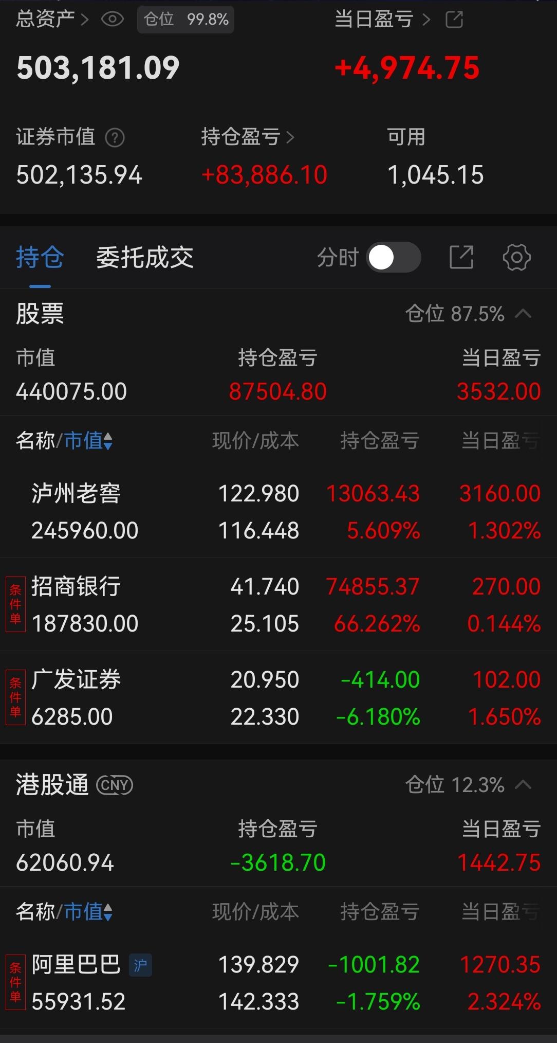 今天浮盈4974元,无操作。这个月目前为止浮亏严重,但也没有什么能操作的地方。