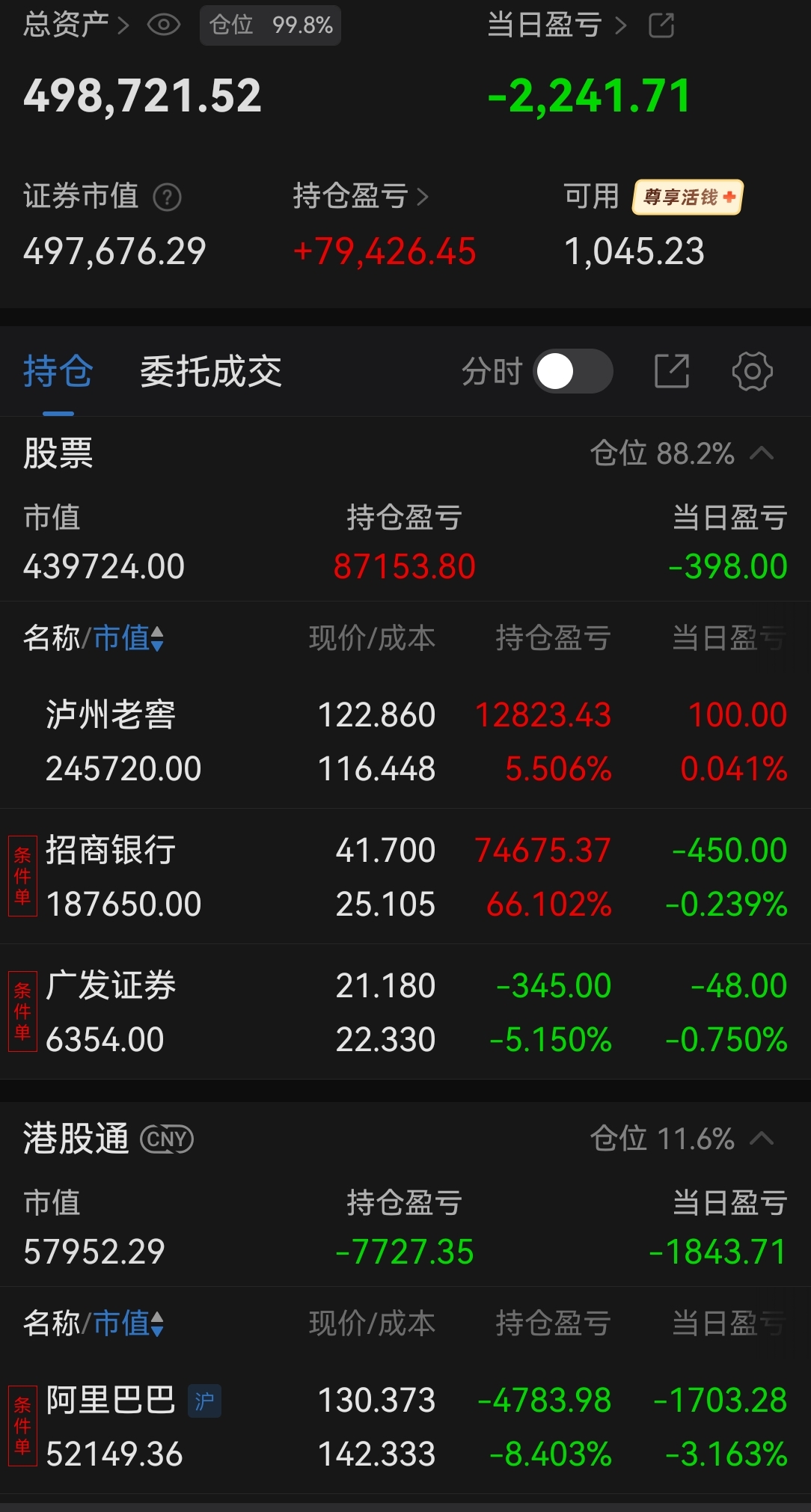 今天浮亏2300元左右,无操作。今天阿里巴巴跌得更厉害了。