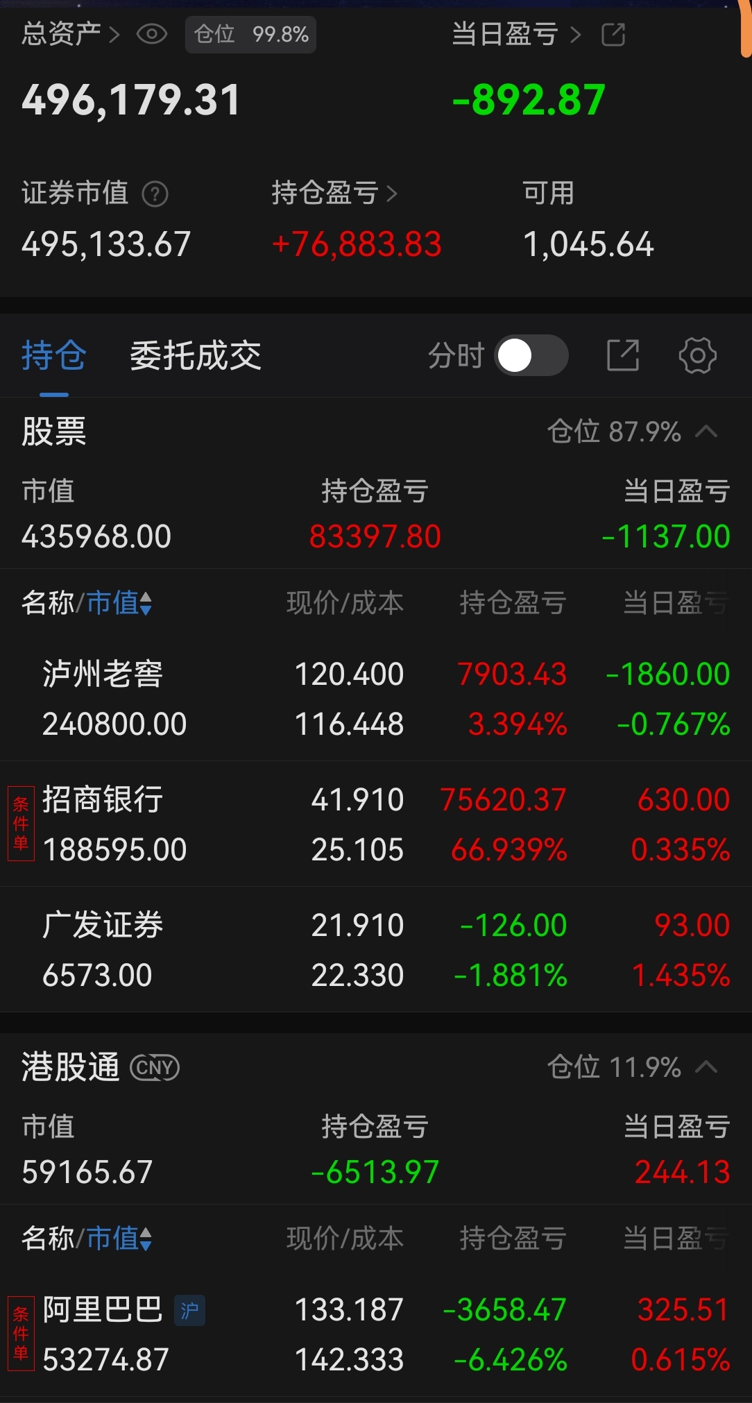你看我白酒亏了吗?老窖我年初买的时候它比现在惨多了。另外,如果在a股上,我连处于低谷的高端白酒都不敢买入和持有,那我可以销户了。
