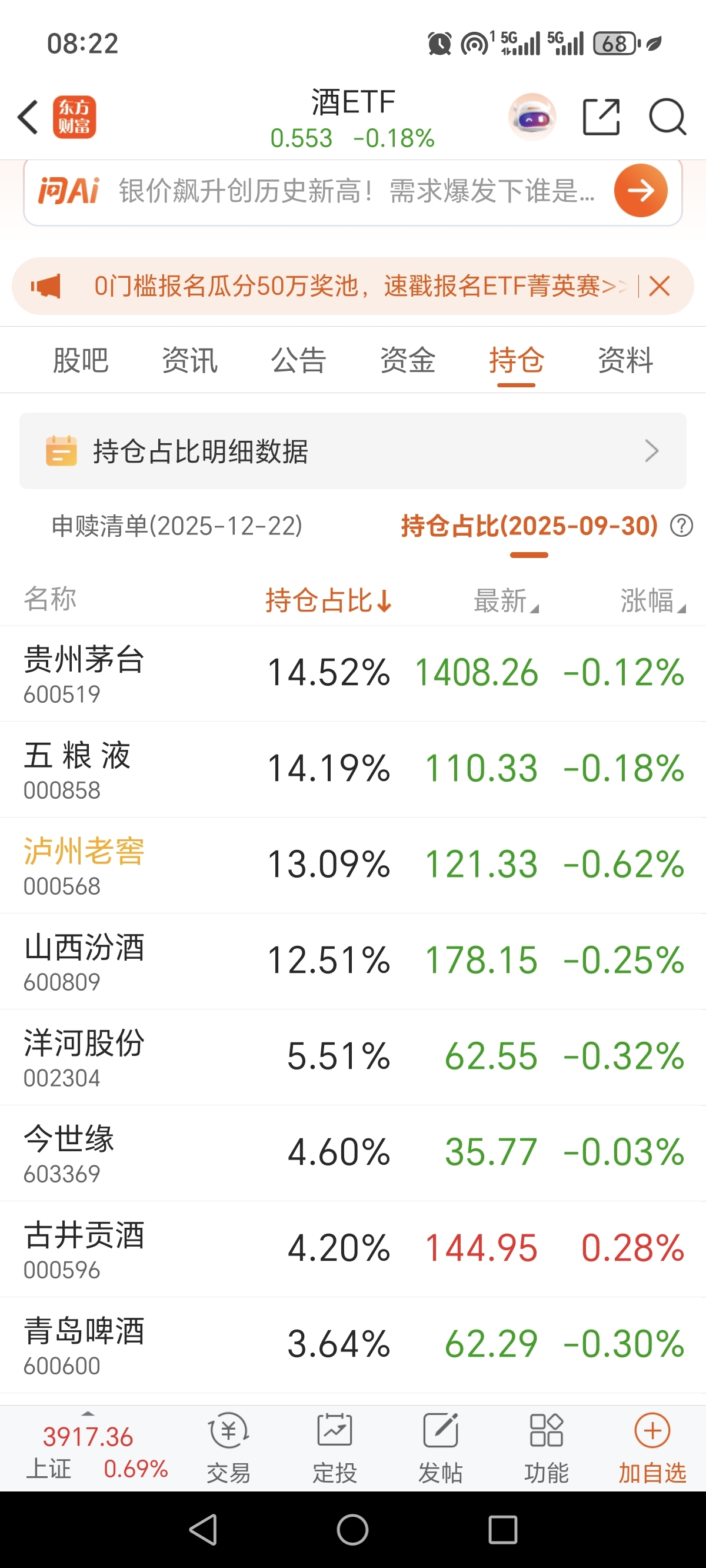 老窖在酒ETF的占比又减少了。别的主力不给数据看,这个名牌的主力数据还是要相信的