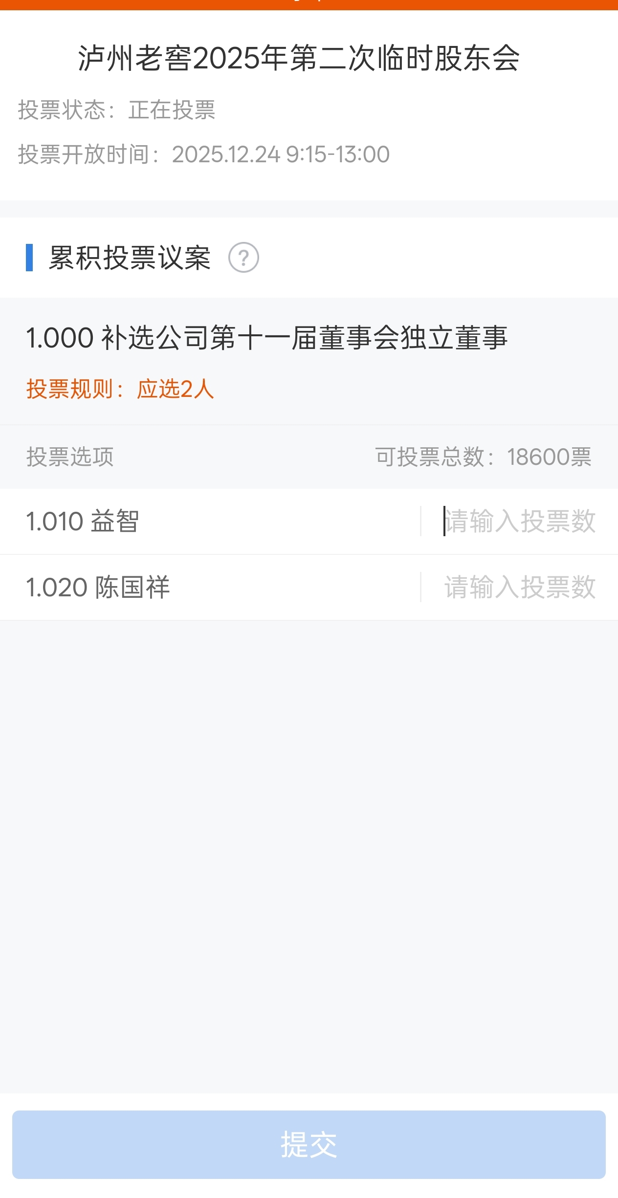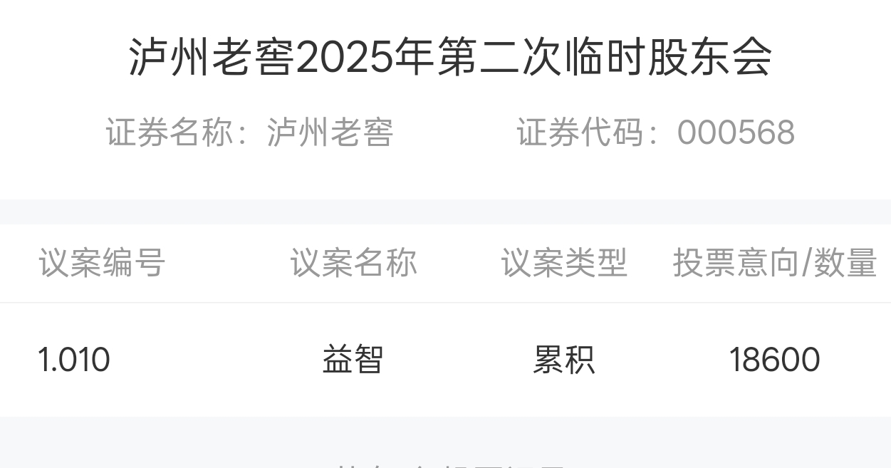 $泸州老窖(SZ000568)$ 股东大会投谁,我有18600票
