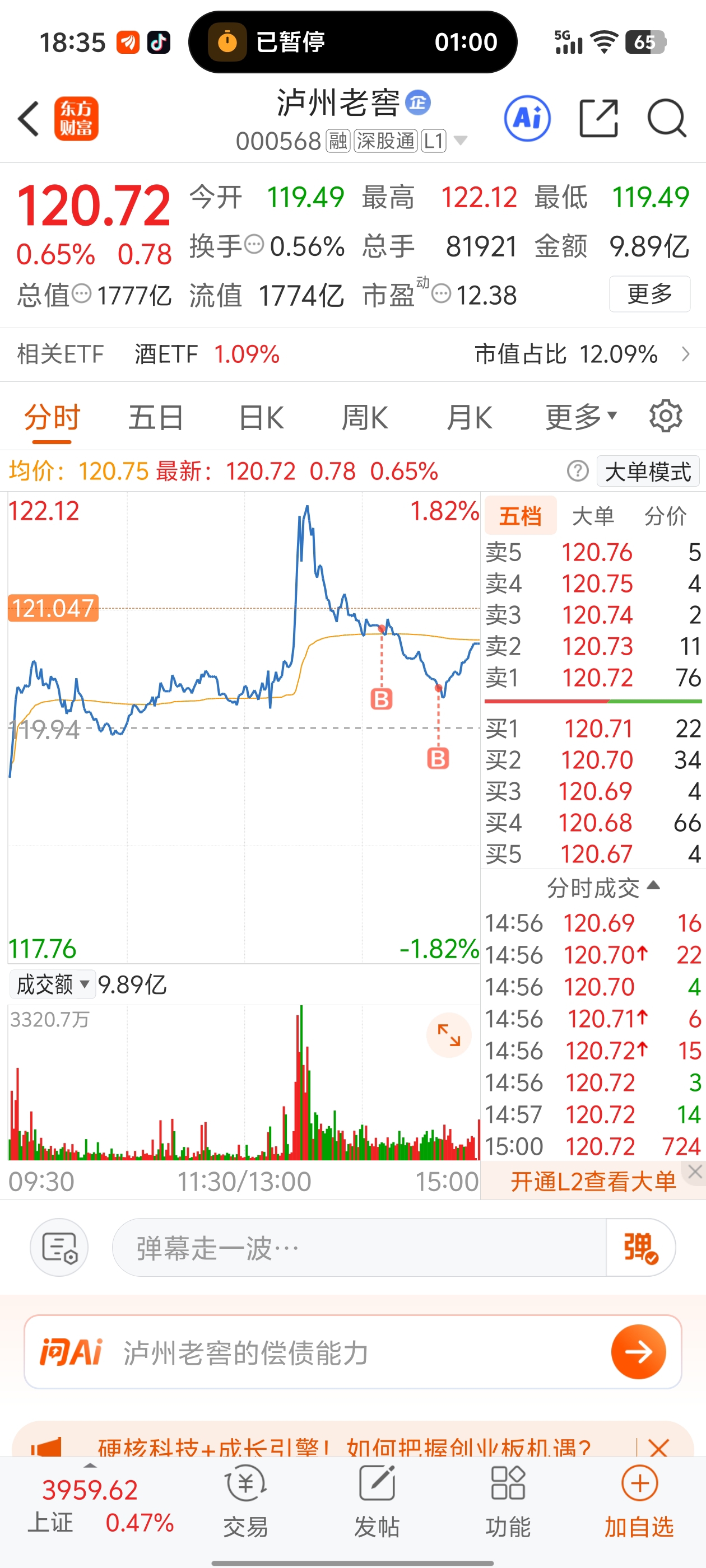 $泸州老窖(SZ000568)$ 太好啦,今天补仓,明天5个点,知足了