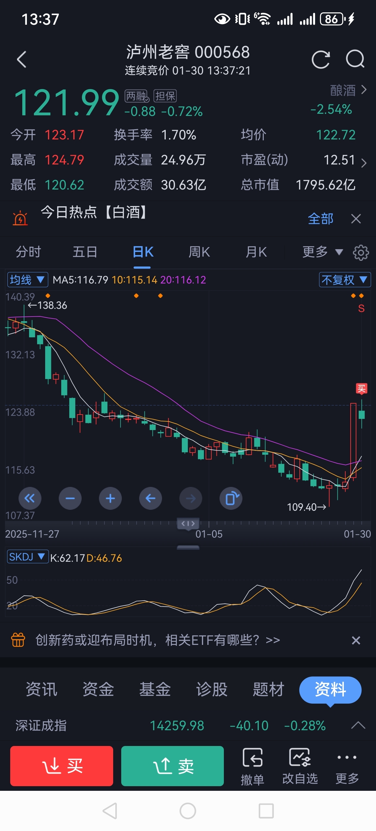 121.93首次建仓。过年大消费会起来一波。