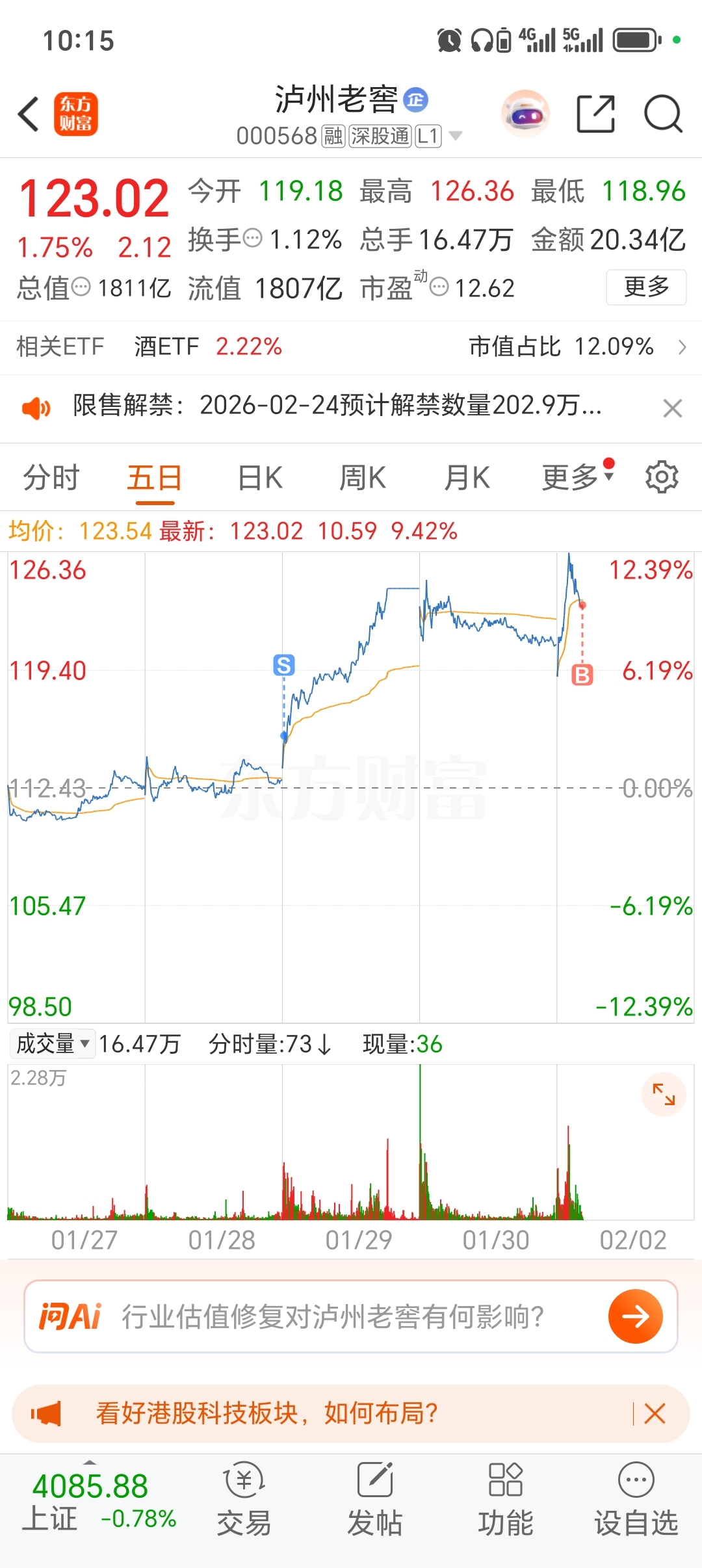 $泸州老窖(SZ000568)$ 113卖的,123买回来的