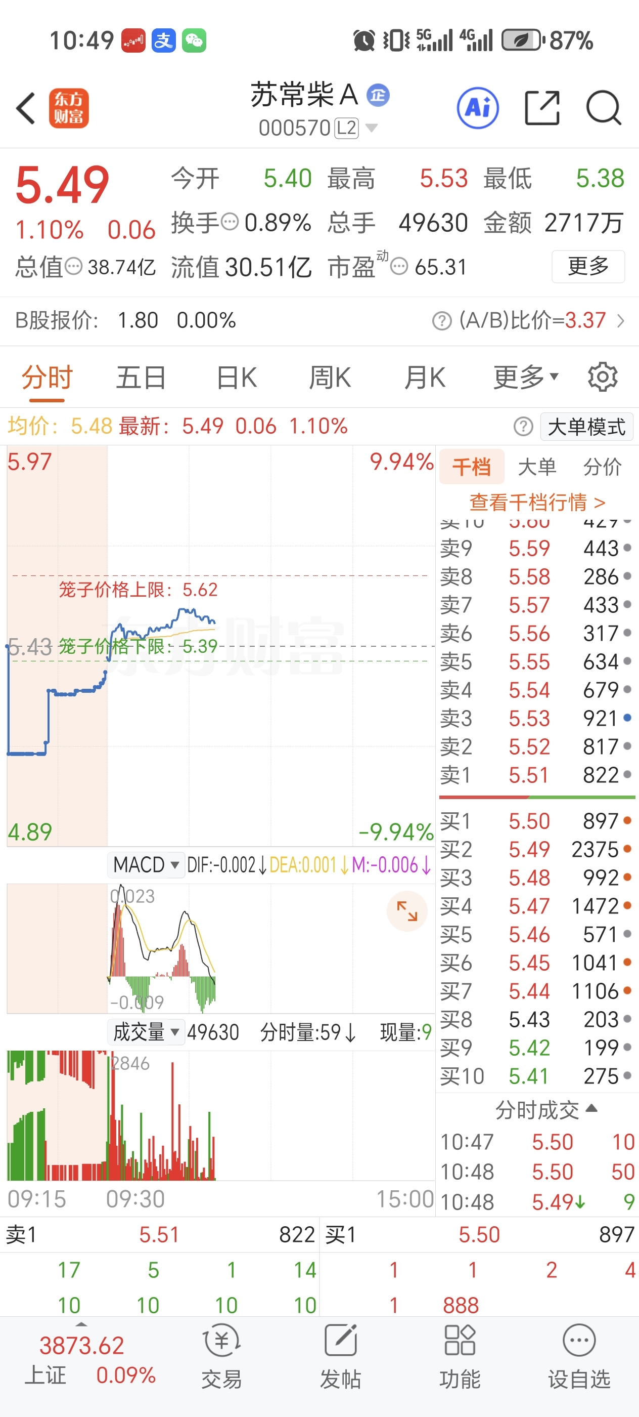 $苏常柴A(SZ000570)$ 9手哥直接给砸到不交易