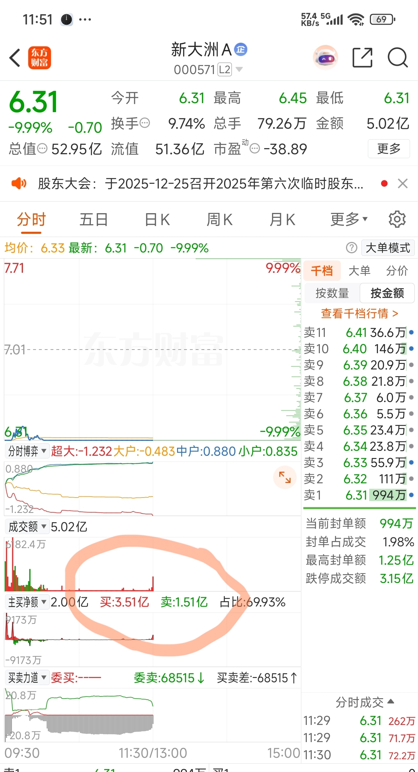 $新大洲A(SZ000571)$ 挂单吧,我估计你们买不到票了,昨天进的7亿恐慌盘出来3.5亿,1.51亿应该是公司套现还债去了,也就造成主力底仓拿到5亿筹码,当然7亿还有一半可能会出来,但是现在明牌做多连板,游资又不傻本身就是进来做二波次的。所以挂单一手估计买不到票子