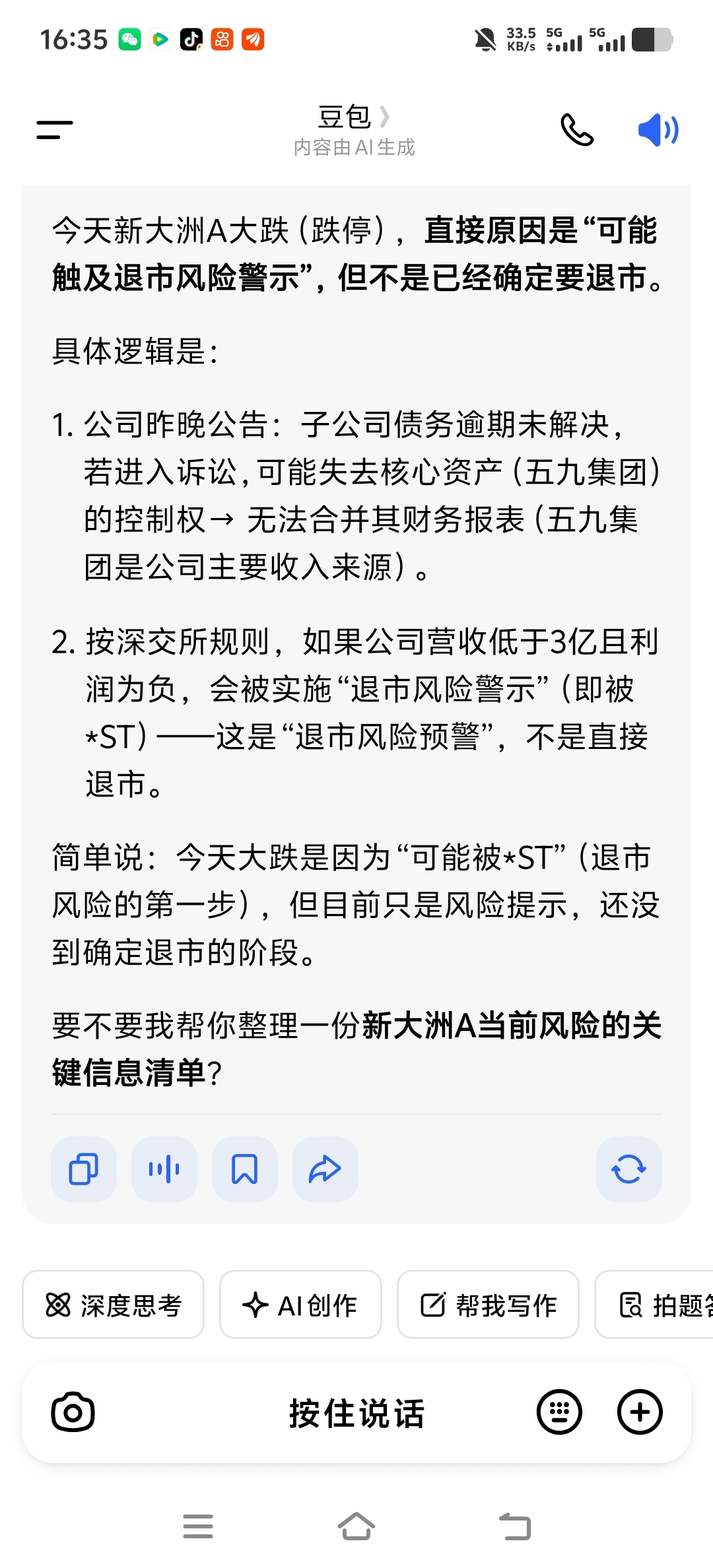 $新大洲A(SZ000571)$ 妈的今天割肉了,没有搞明白,现在明白了,被洗出来了,又不是财务造假跑个毛线,老子又买回来,