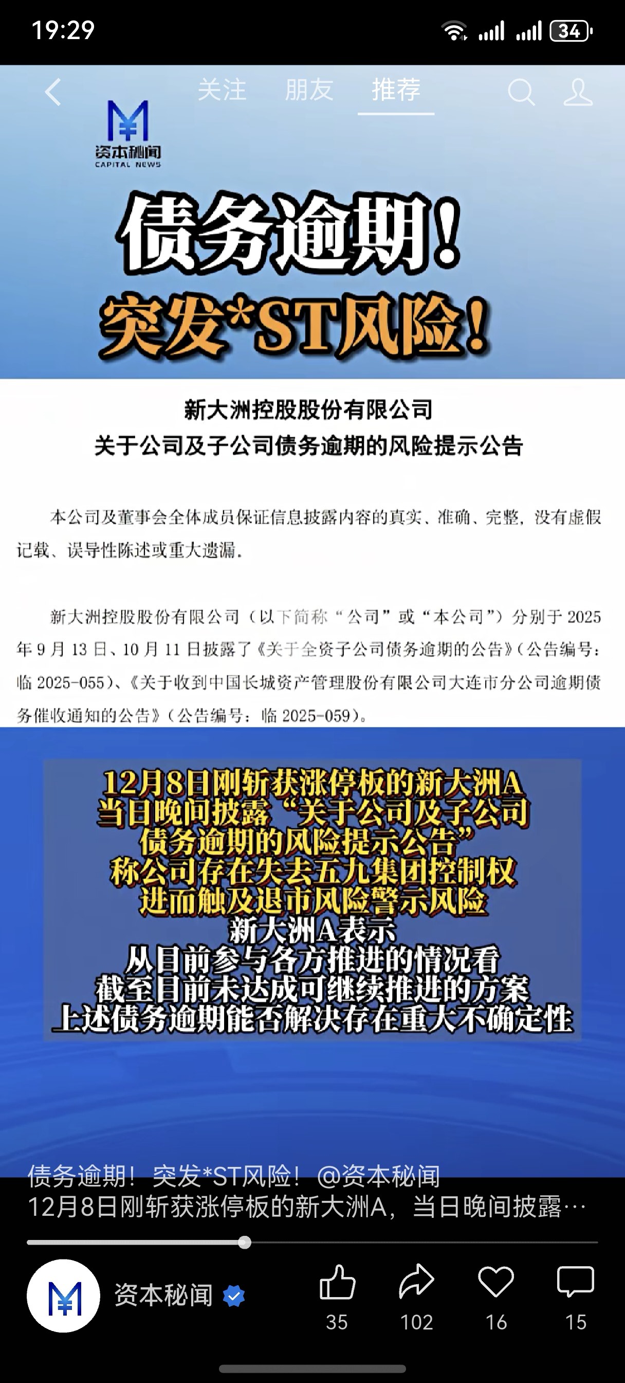 $新大洲A(SZ000571)$ 新大洲债务逾期!突发ST风险??这个是真的还是假的?