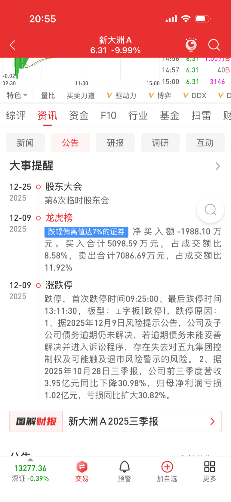 $新大洲A(SZ000571)$ 找到跌停的原因了,那完了