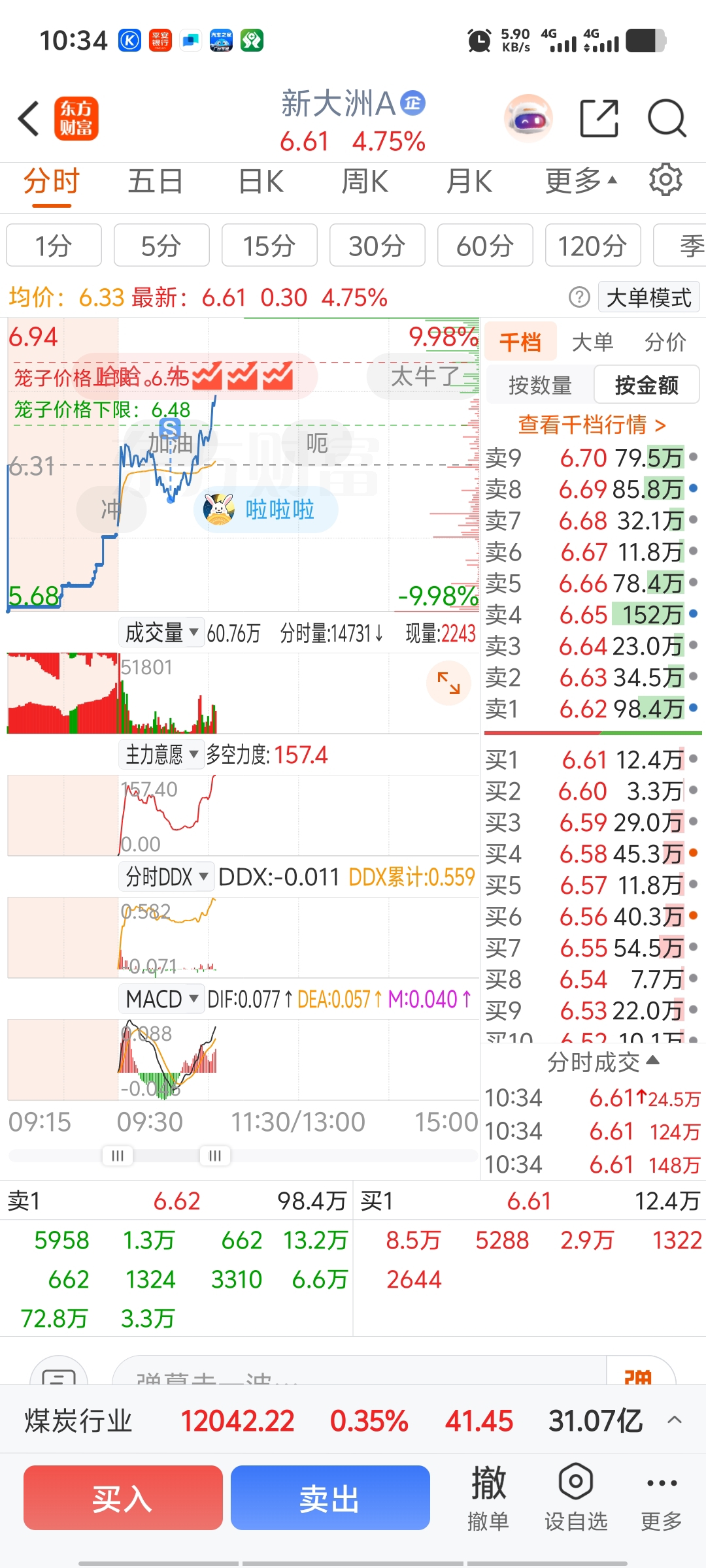 $新大洲A(SZ000571)$ 看来主力是看着我的牌打的