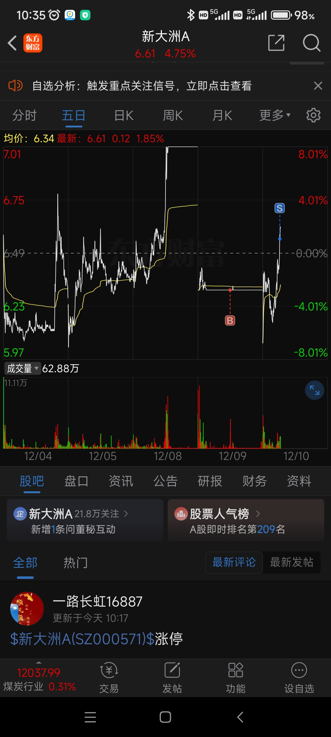 $新大洲A(SZ000571)$ 虽然我卖飞了,但我依然感谢不杀之恩