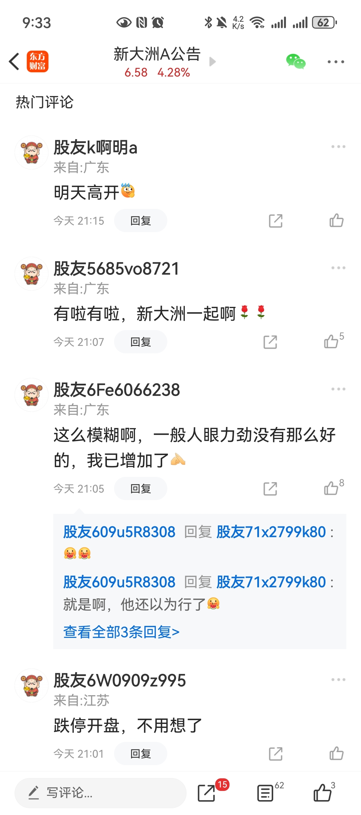 温馨提示: 1.根据《证券法》规定,禁止编造、传播虚假信息或者误导性信息,扰乱证券市场;2.用户在本社区发表的所有资料、言论等仅代表个人观点,与本网站立场无关,不对您构成任何投资建议。用户应基于自己的独立判断,自行决定证券投资并承担相应风险。《东方财富社区管理规定》