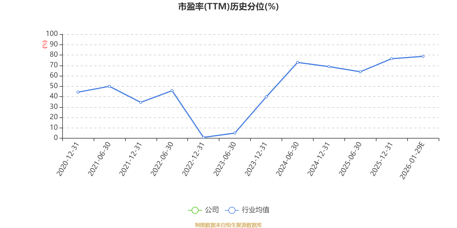 以本次披露业绩预告均值计算,公司近年市盈率(TTM)图如下所示: