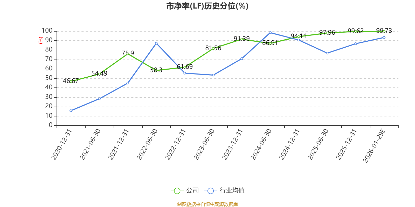 市盈率、市净率为负时,不显示当期分位数,会导致折线图中断。