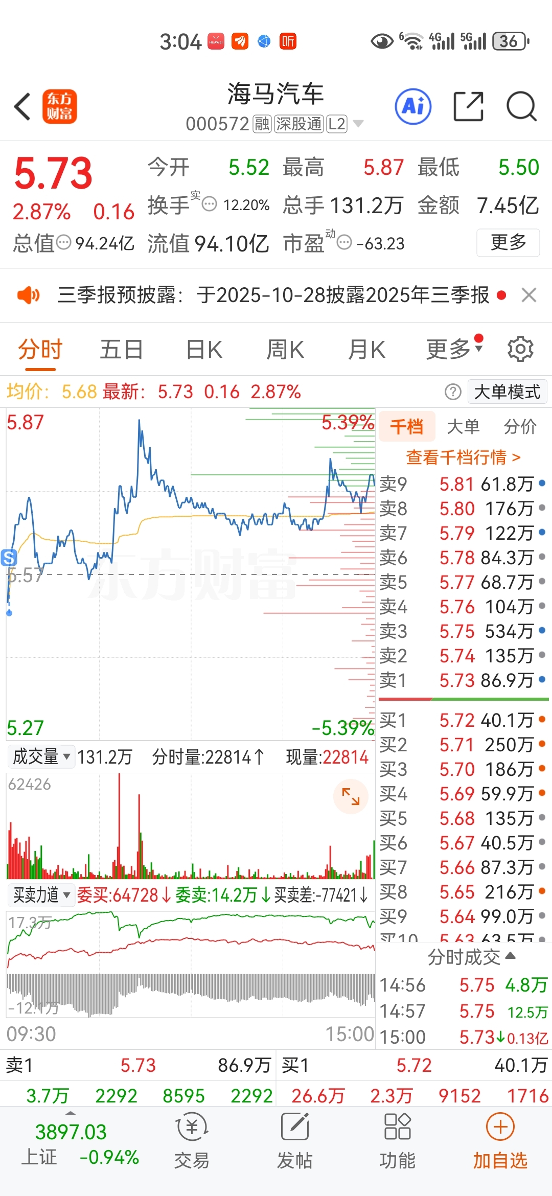 $海马汽车(SZ000572)$ 卖在最低点,哈哈