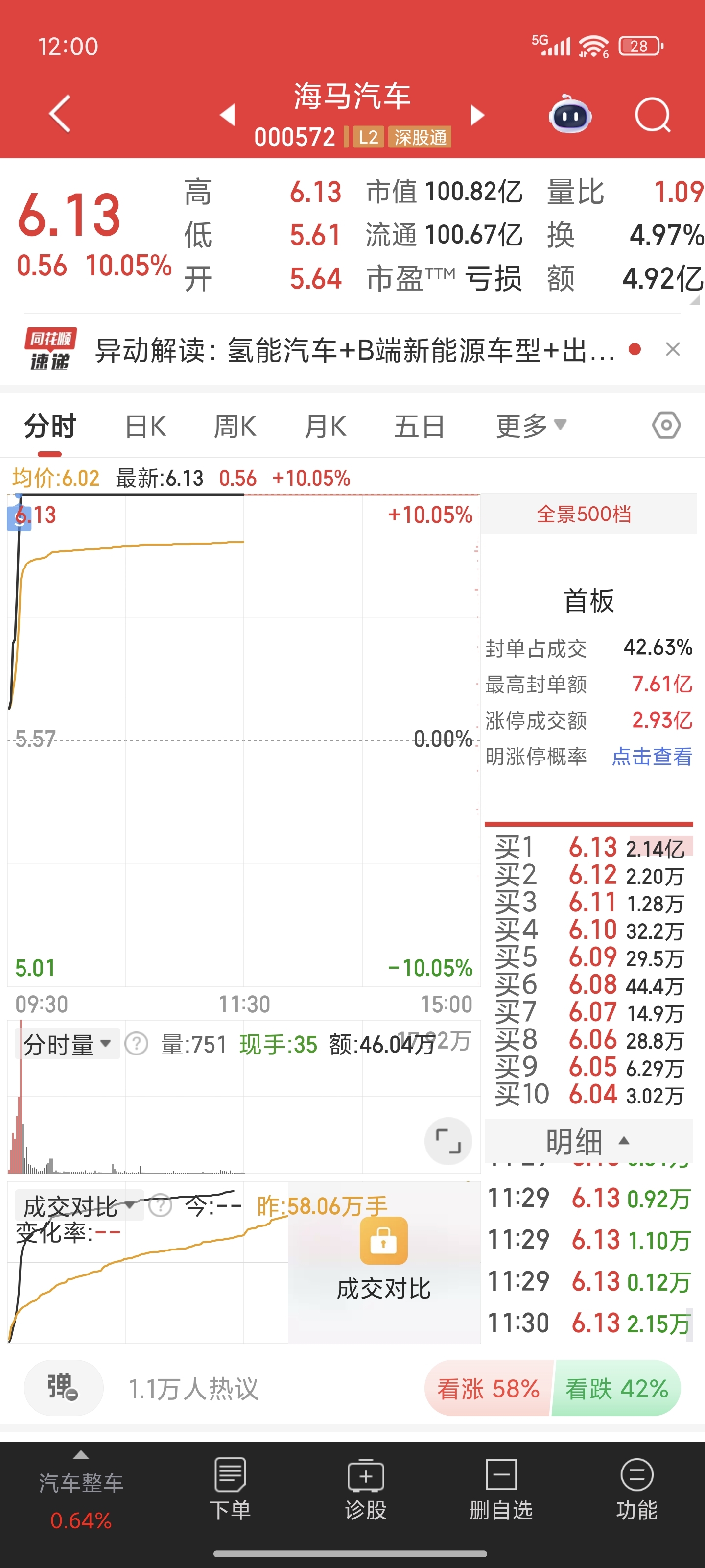 $海马汽车(SZ000572)$ 你快开啊,做t结果你封住了