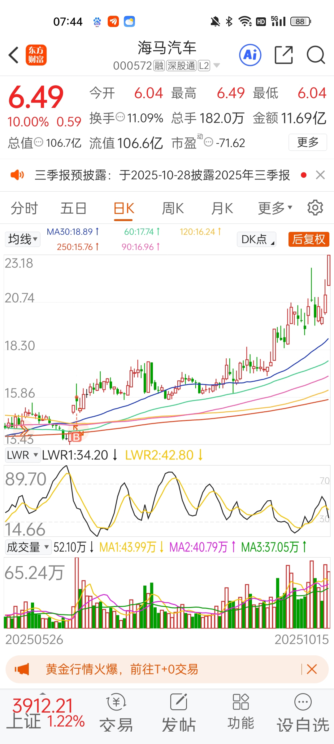 大家早上好,6月25日介入的海马,如果今天封板继续拿,不封板的话,小路选择离场。