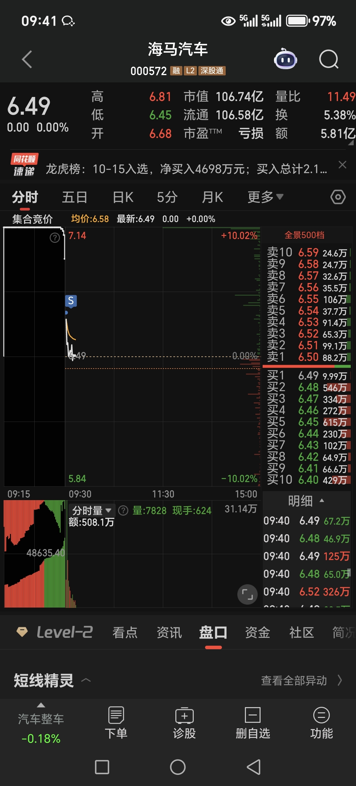 $海马汽车(SZ000572)$ 我是你们的股神,开盘按死