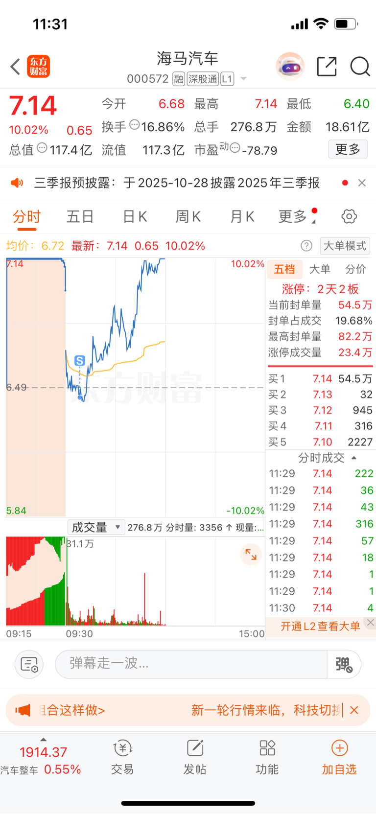$海马汽车(SZ000572)$ 吃了一个板被赶下车了 车上的朋友发财
