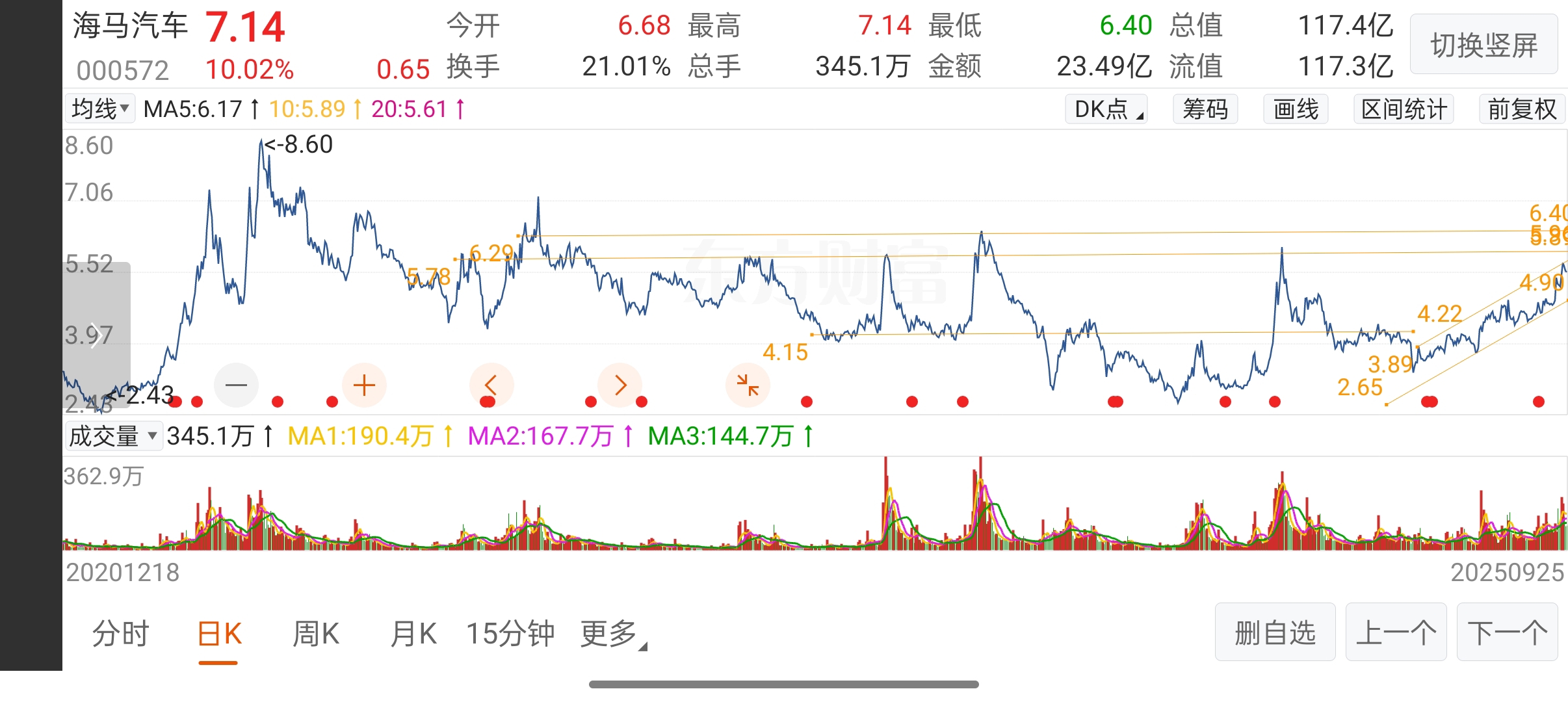 $海马汽车(SZ000572)$ 怎么都在唱空,搞不懂为什么都在唱空,放量突破三年的压力位短期上升趋势通道线也没破
