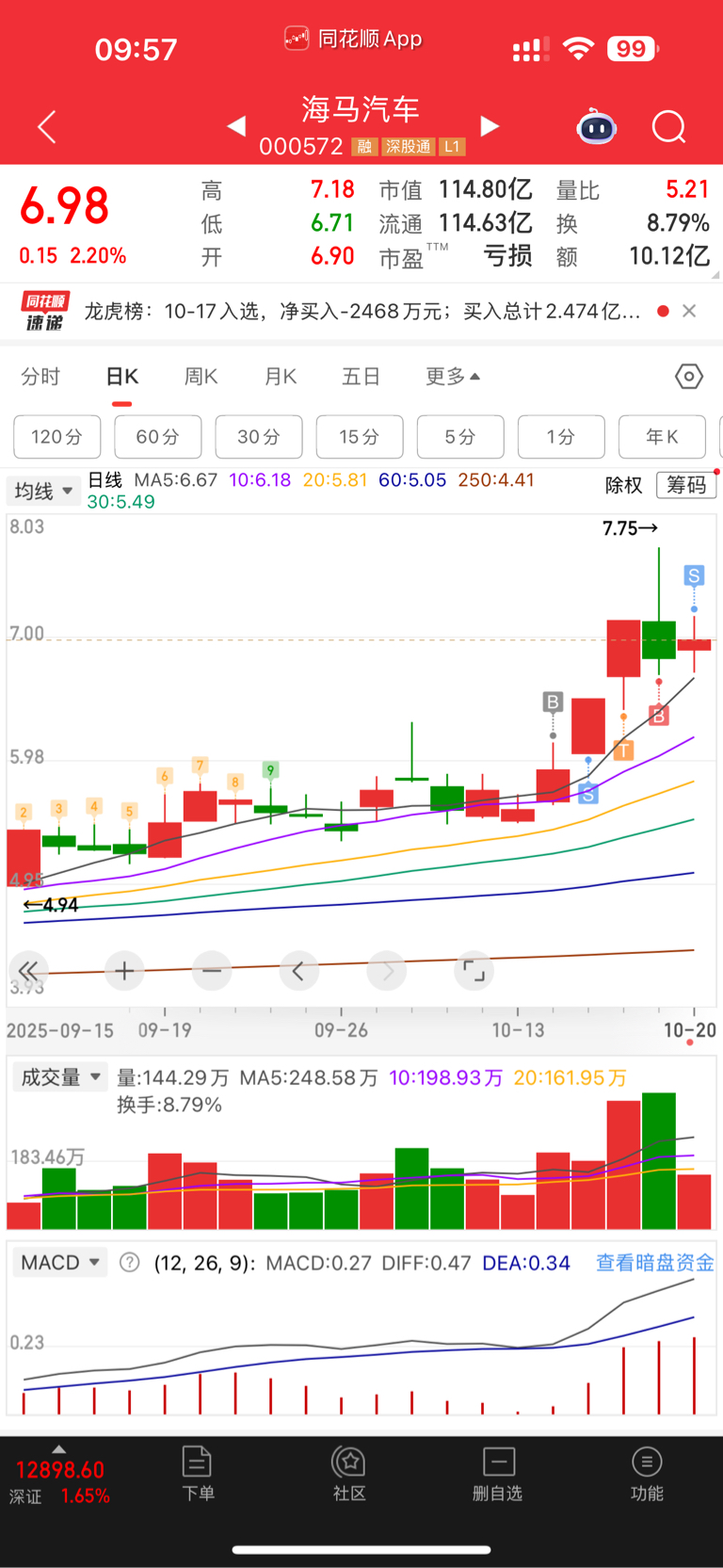 $海马汽车(SZ000572)$ 我卖了,主力你可以跌了