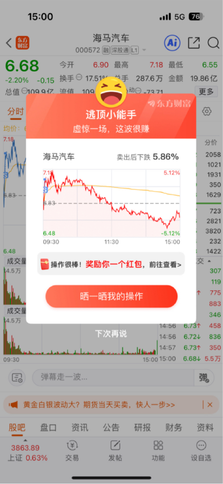 谢谢主力我先跑了,6块的时候我再回来