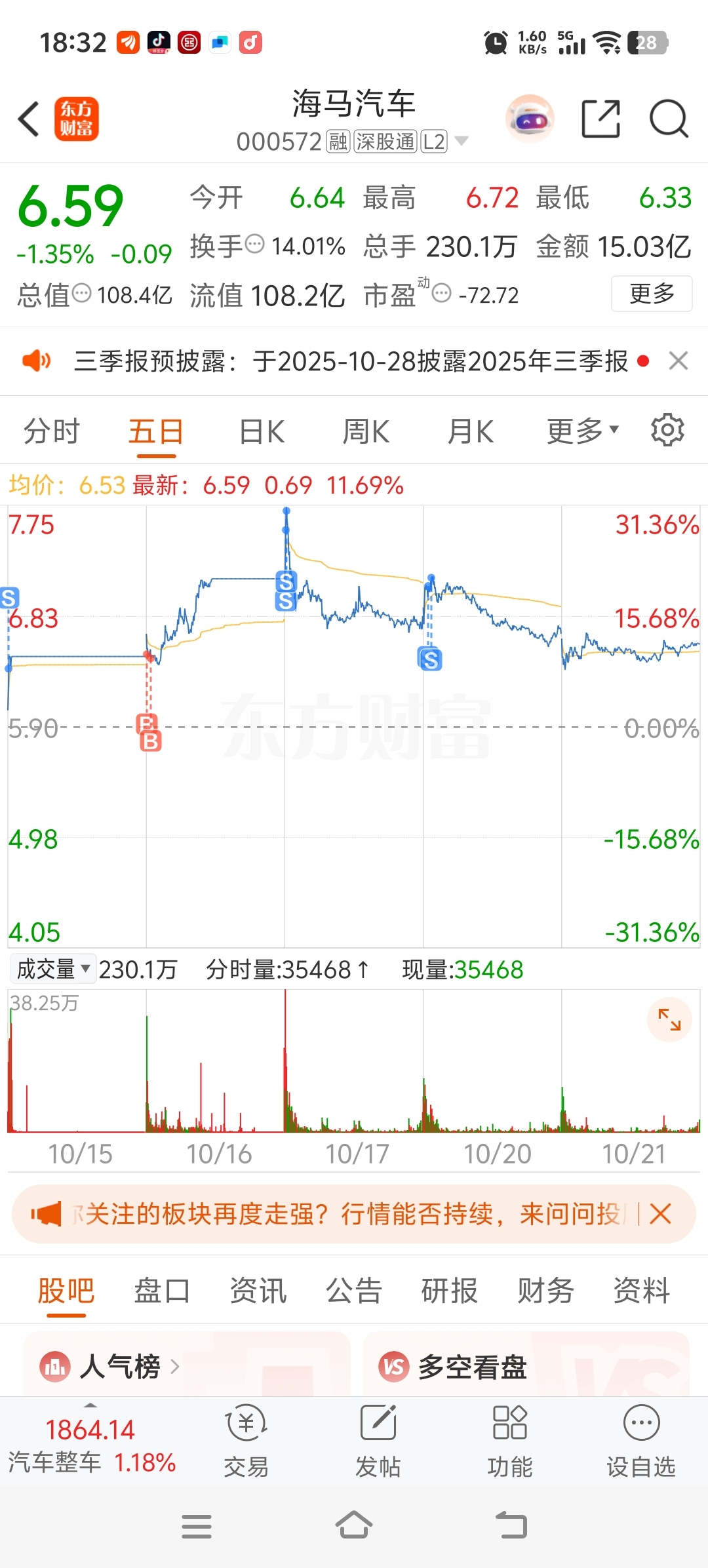 $海马汽车(SZ000572)$ 主力没我跑得快,所以应该主力没跑完,所以还得拉升,大家抄家伙干就完事了。