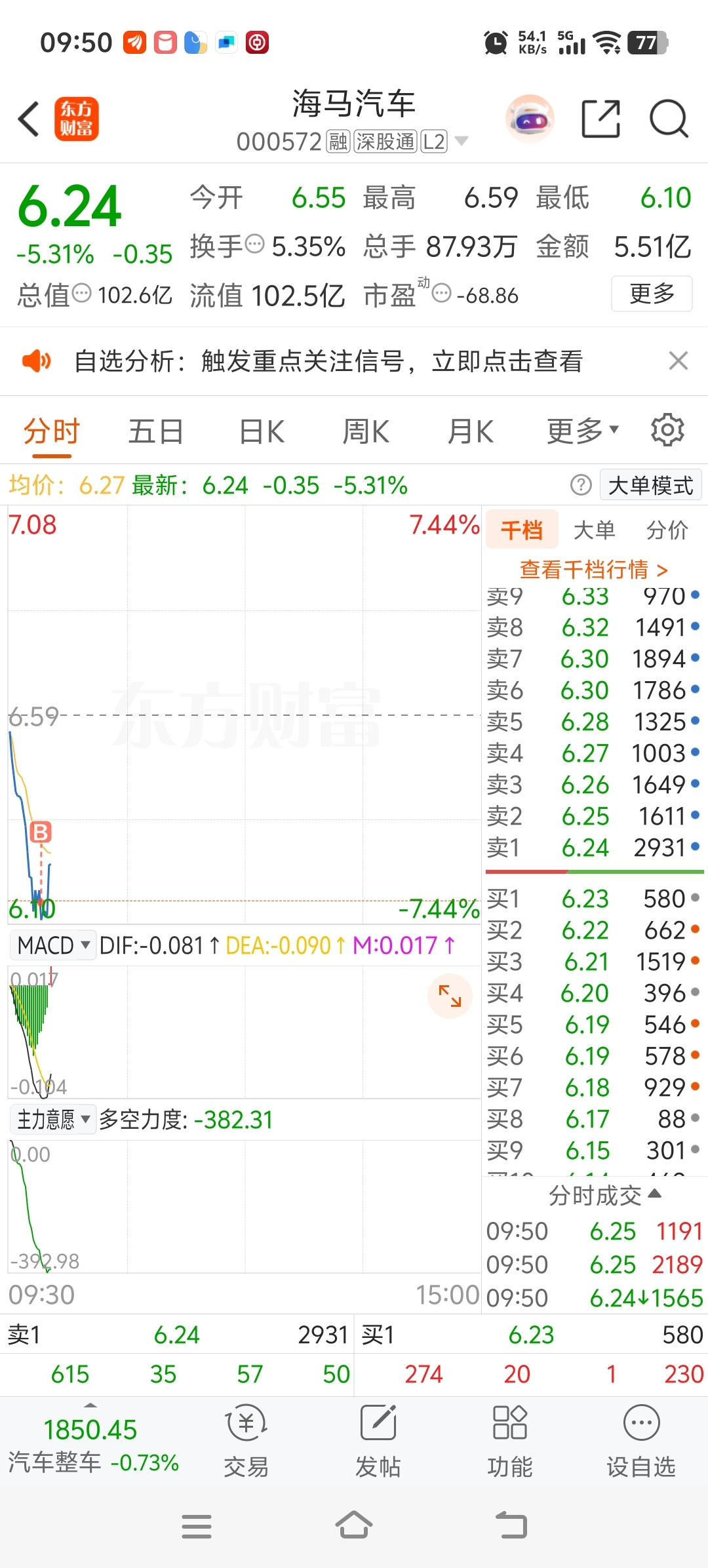 $海马汽车(SZ000572)$ 支持一千
