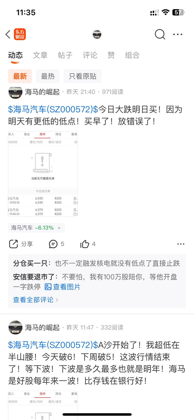 $海马汽车(SZ000572)$ 老海马昨天都被他坑了!昨天晚上才反应过来!今天不接了等他横盘蒸蛋再接了!这波A沙没有几个月估计很难洗出新股友!