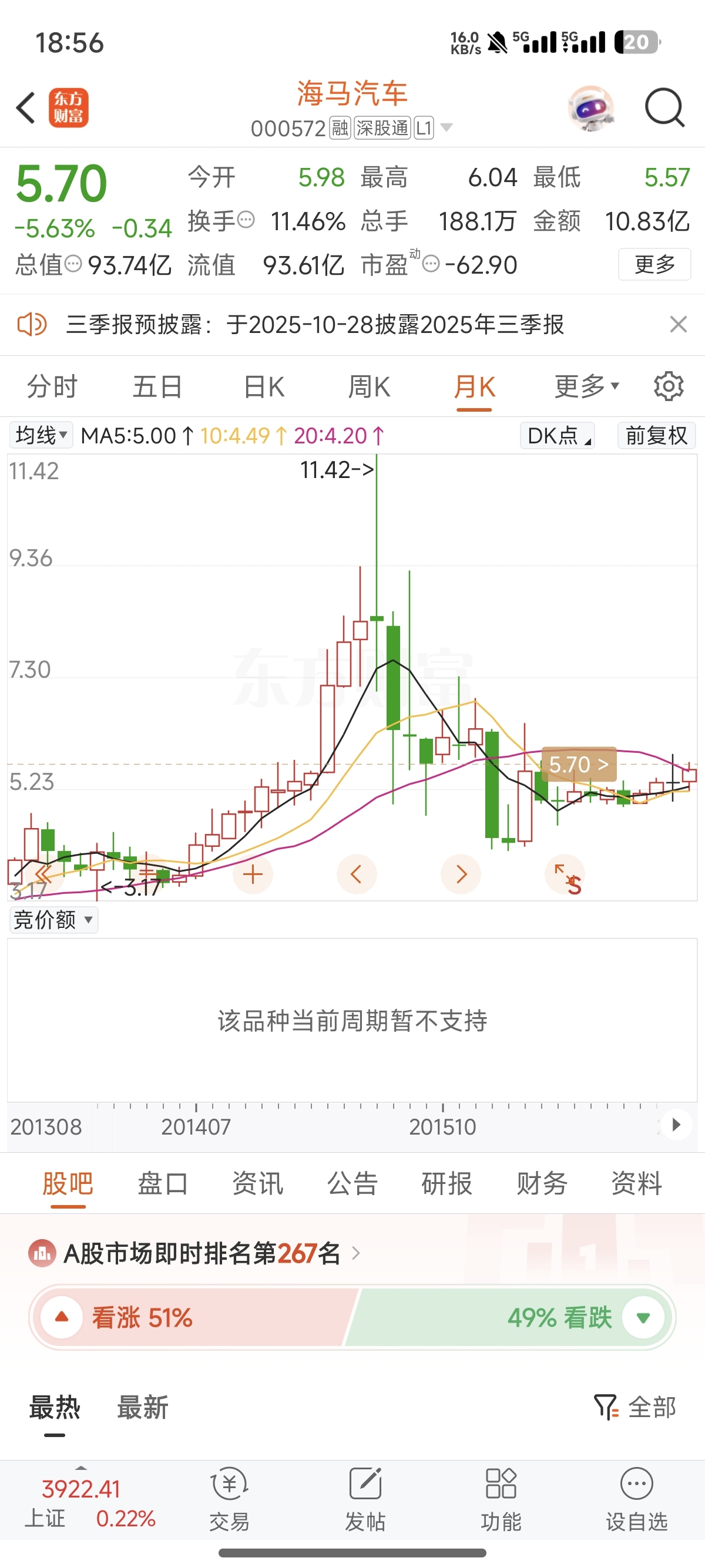 $海马汽车(SZ000572)$ 看月k线和2015年拿那根上吊线一样啊,难道真的到头了?