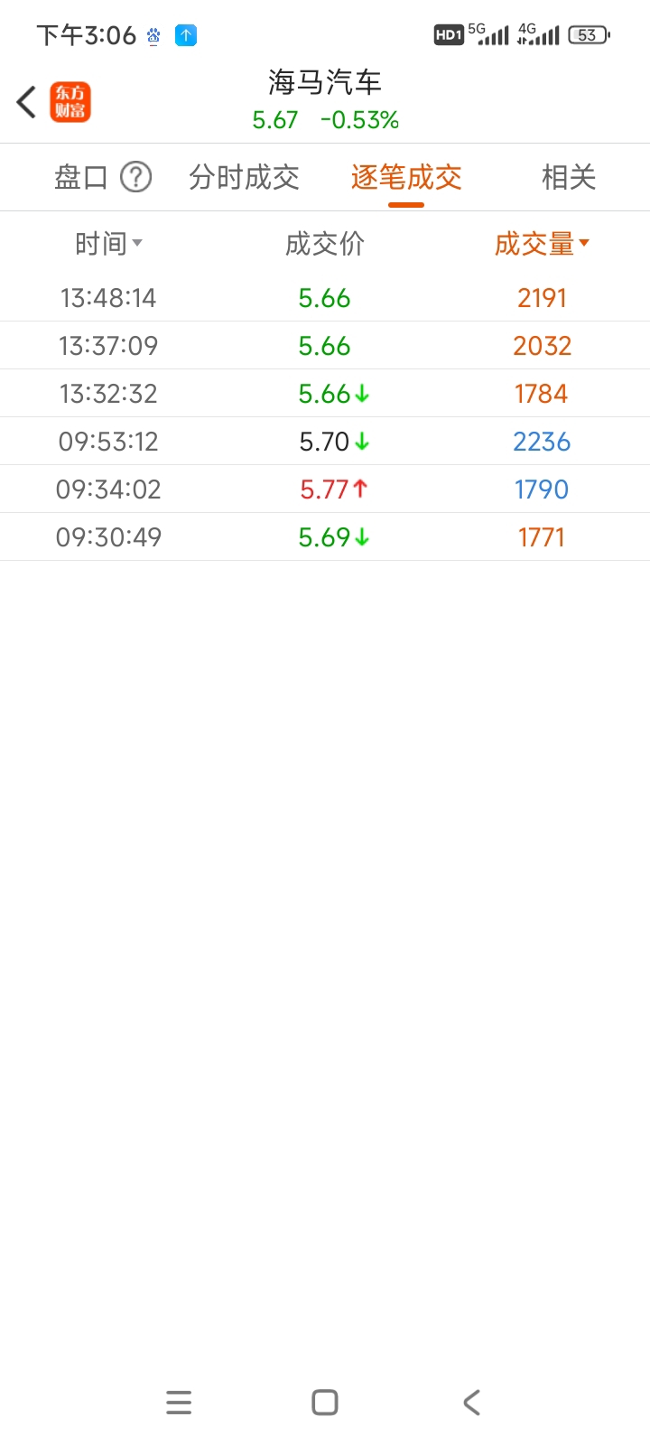 $海马汽车(SZ000572)$ 逐笔成交超大单不多嘛