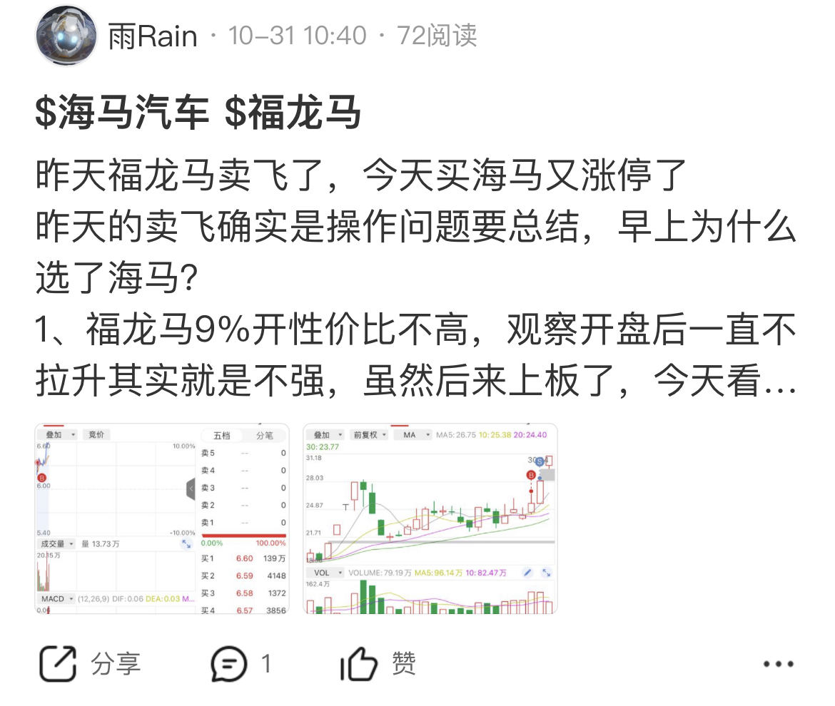 $海马汽车(SZ000572)$ $福龙马(SH603686)$ 大逻辑跟我预期的一致!周五跟今天我都在留意,盘口,换手,量能,板块效应等等!明天加速冲……