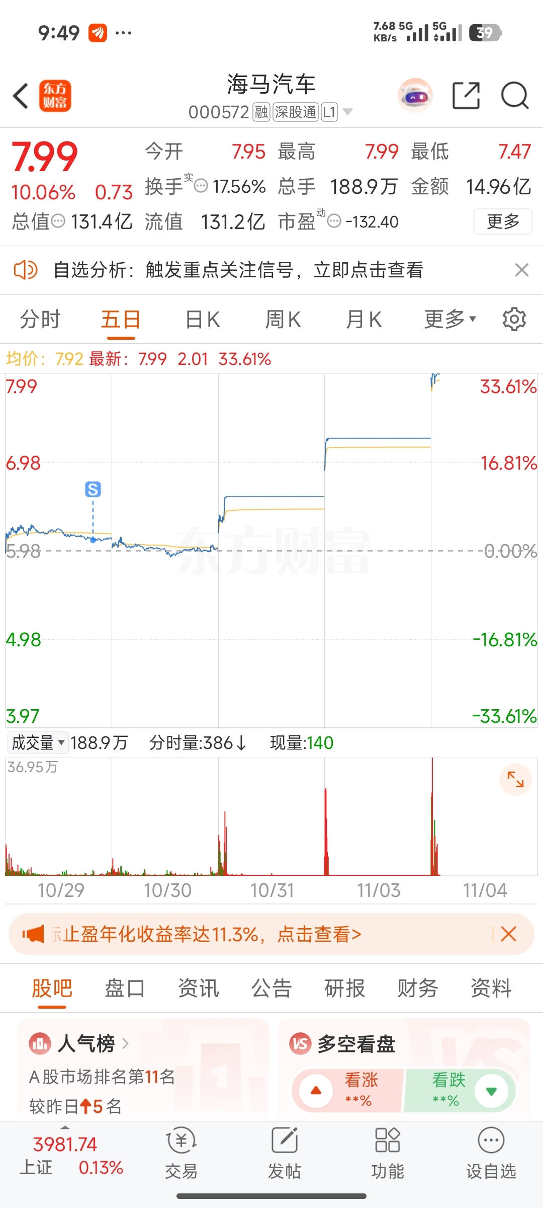$海马汽车(SZ000572)$ 再次躲过牛股!