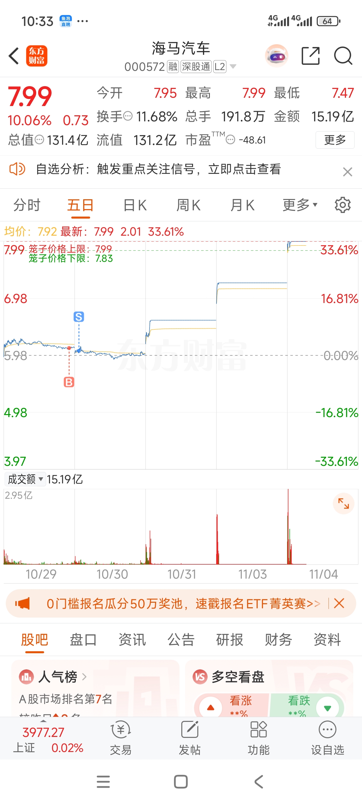 $海马汽车(SZ000572)$ 我不适合炒股 不玩了