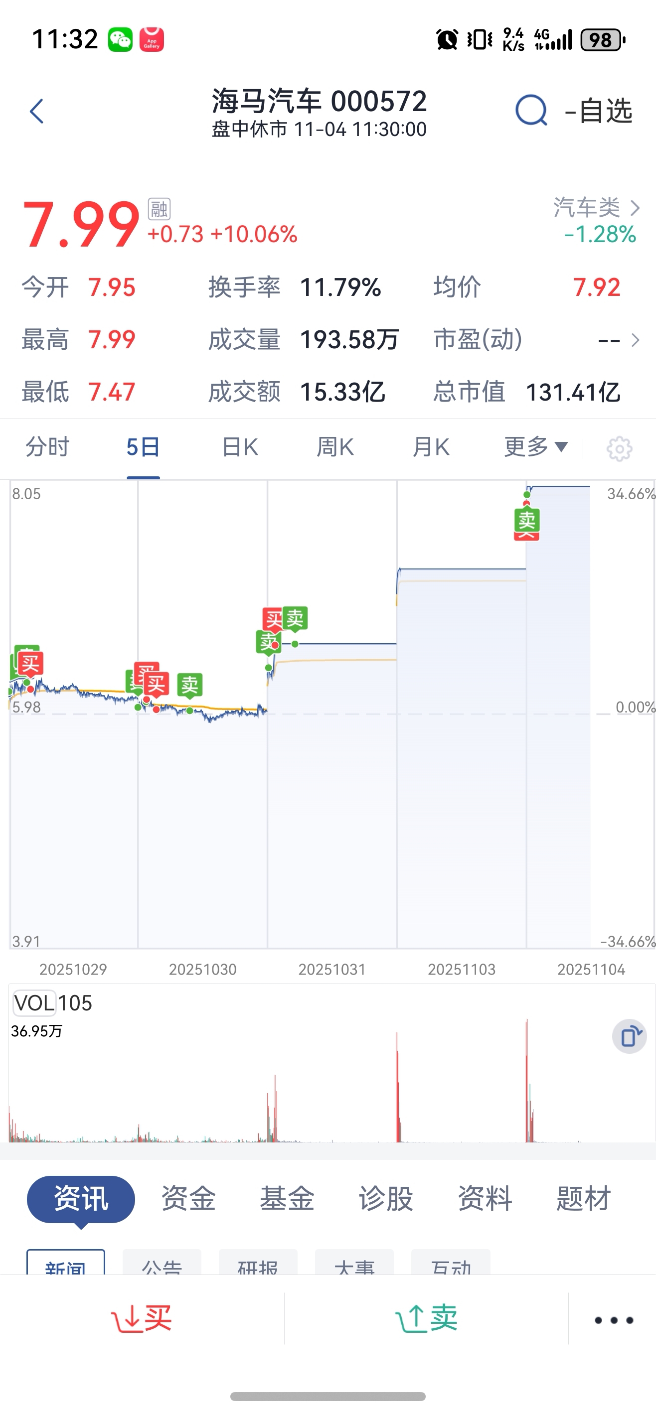 $海马汽车(SZ000572)$ 到8元了,减到一成仓。销号咯