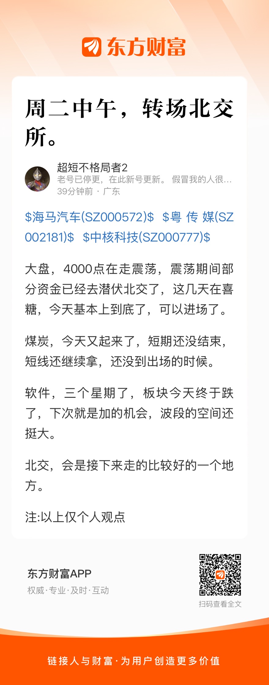 大盘,4000点在走震荡,震荡期间部分资金已经去潜伏北交了,这几天在喜糖,今天基本上到底了,可以进场了。