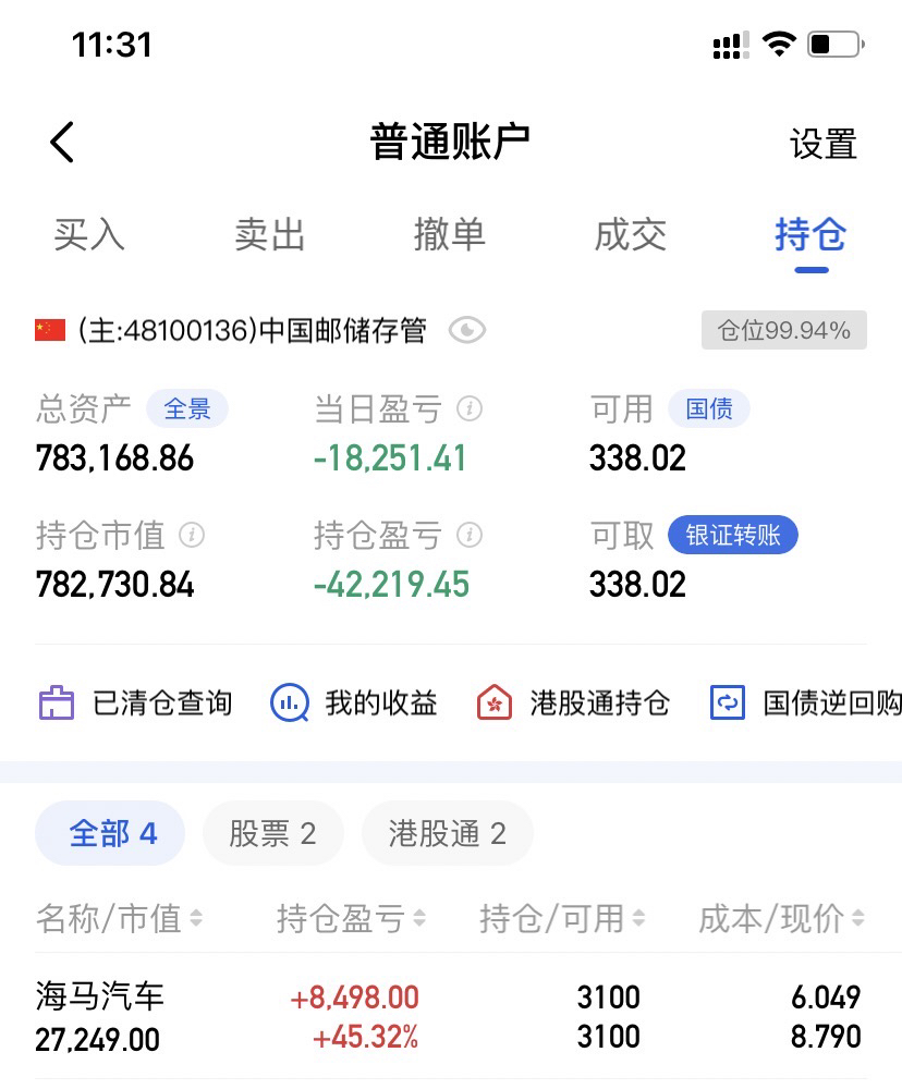 $海马汽车(SZ000572)$ 仓位最小的涨最猛服了