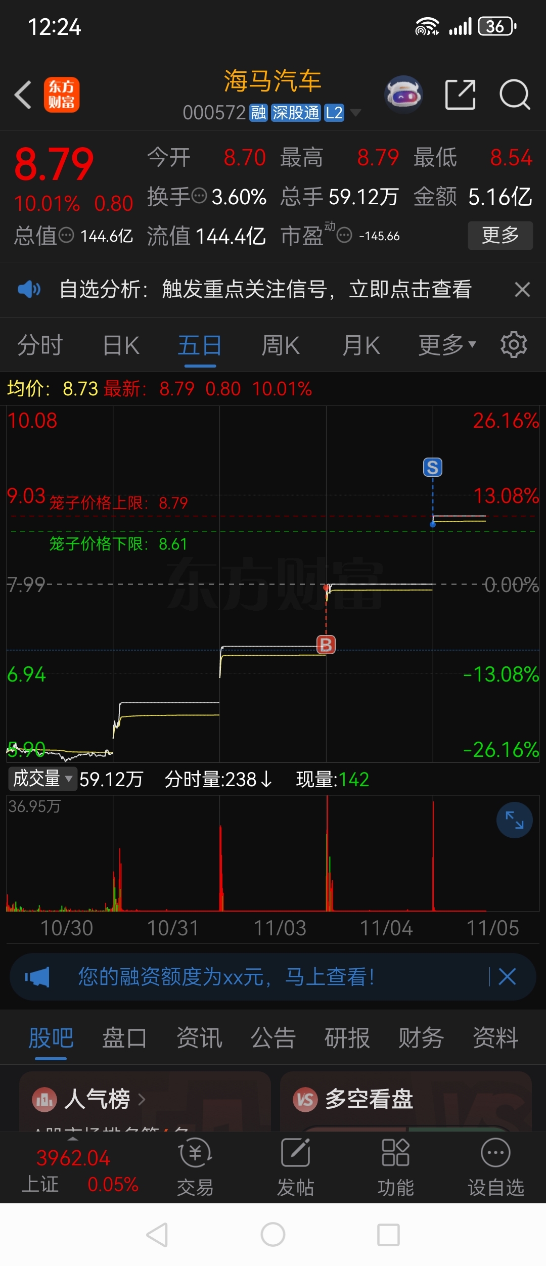 海马加仓紧张点成了卖出一半我该死没亏也出来啦