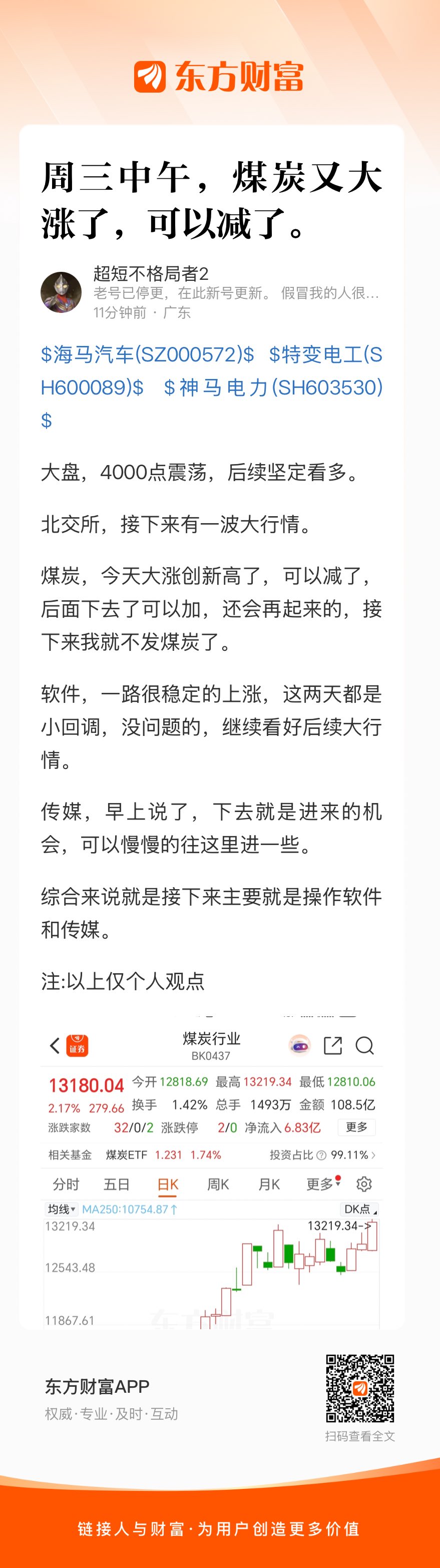 煤炭,今天大涨创新高了,可以减了,后面下去了可以加,还会再起来的,接下来我就不发煤炭了。