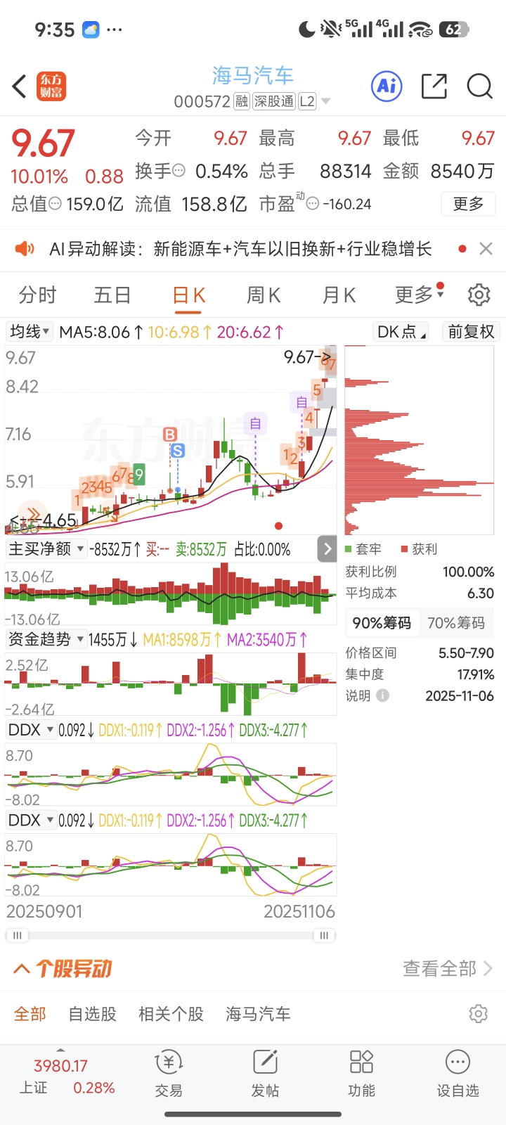 $海马汽车(SZ000572)$ 自从牛市我都不会拿股了,感觉随时会大跌。。。