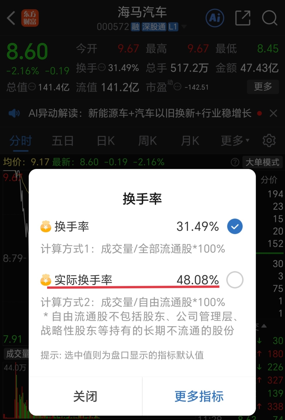 半天换手已经接近前四个涨停的换手之和,实际换手率48.08%,所谓的死亡换手率,就看收盘了,如果收不上去,那起码海马短期没戏了,如果收上去,明天再来个拉板,那马年大妖就出笼了!