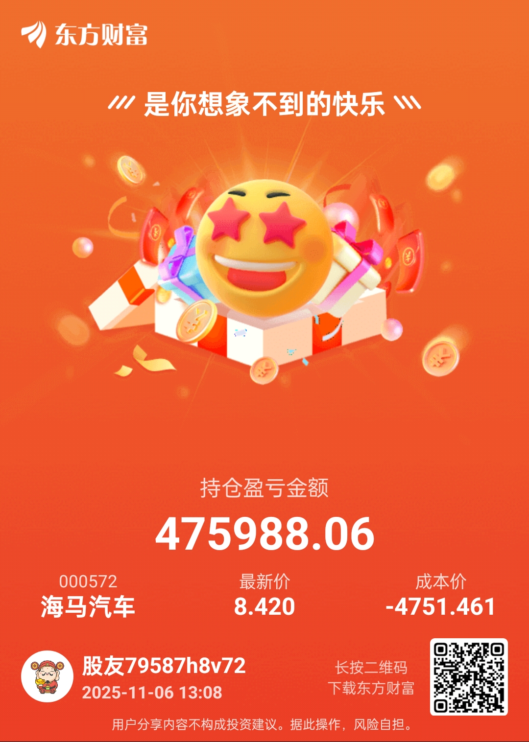 $海马汽车(SZ000572)$ 海马你太牛逼了,谢谢你