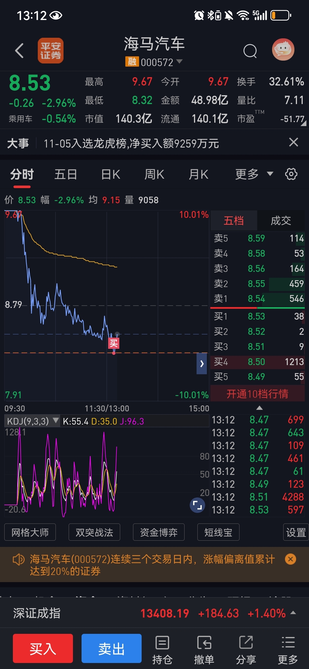$海马汽车(SZ000572)$ 早上竞价挂的8.35就没管它,没想到成交了,这玩意接盘了吗?