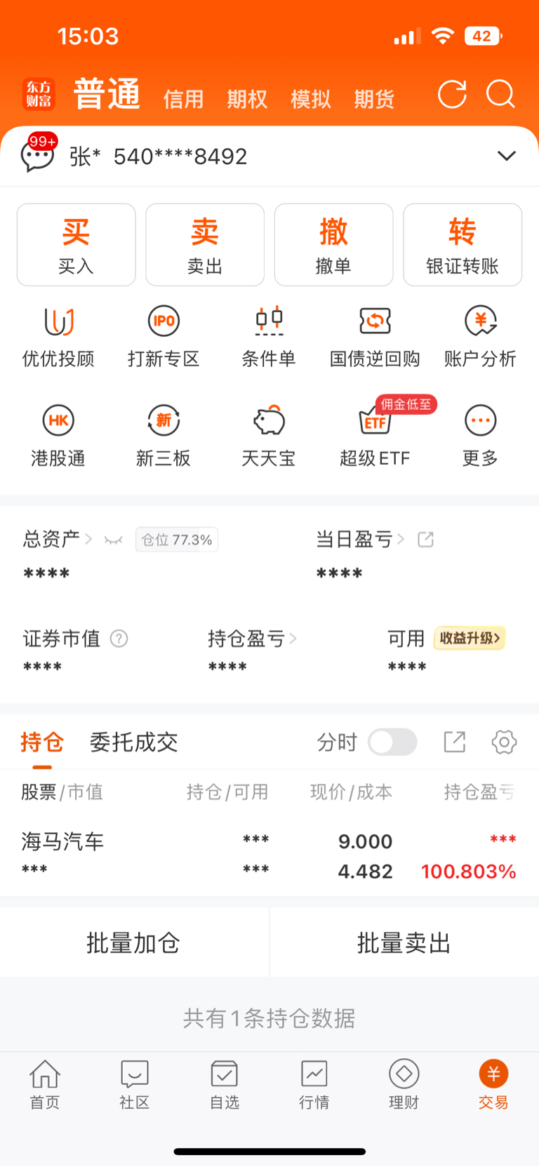 六个跌停才能把我利润回收咯
