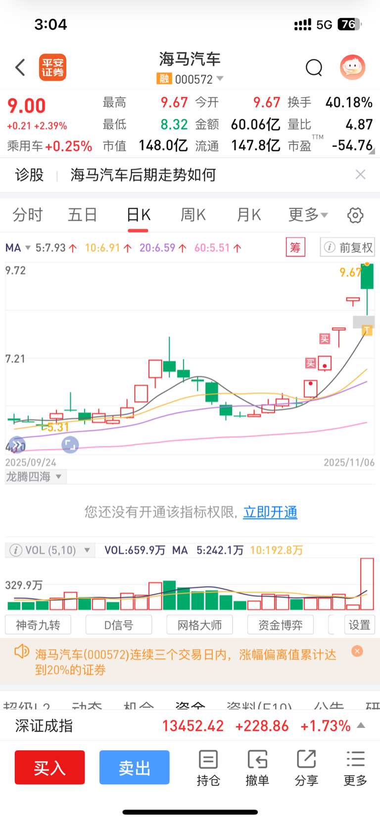 $海马汽车(SZ000572)$ 感谢主力不杀之恩