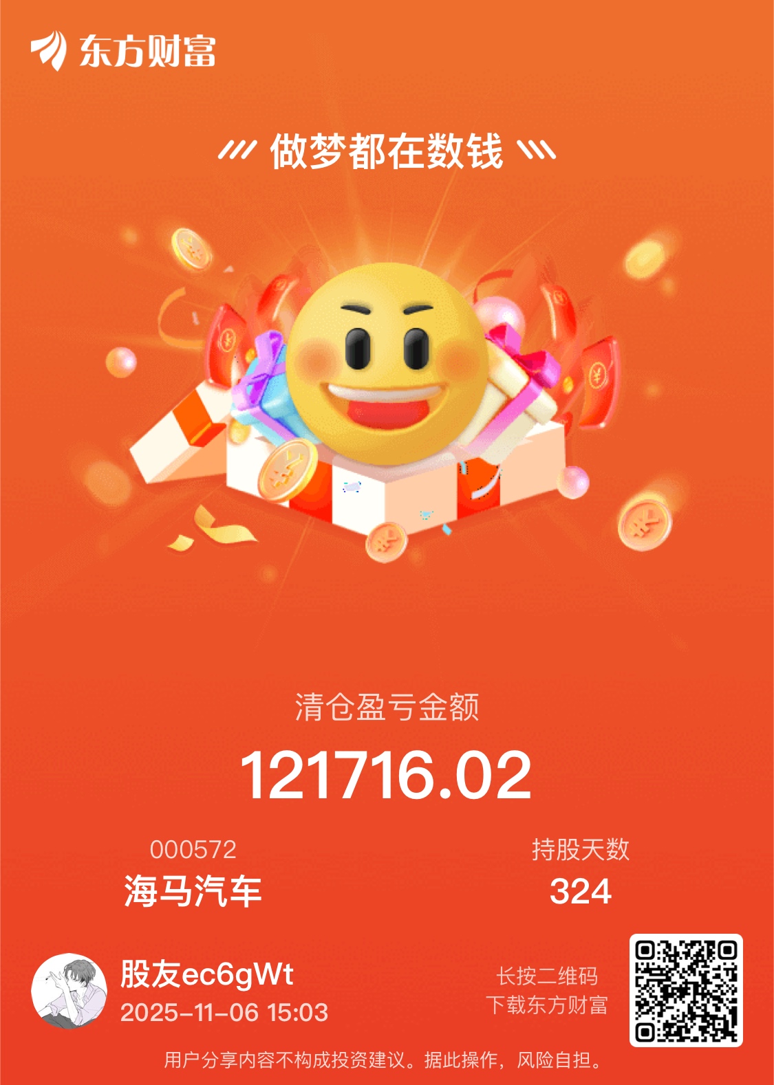 $海马汽车(SZ000572)$ 拿了快一年了,不是朋友提醒都忘了,留下的铁子们发财,我先溜了
