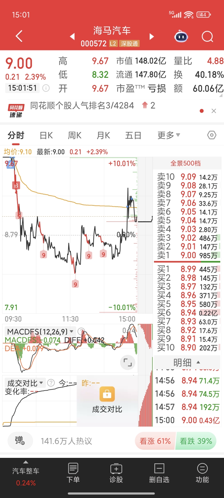 $海马汽车(SZ000572)$ 江湖再见感谢主力不杀之恩