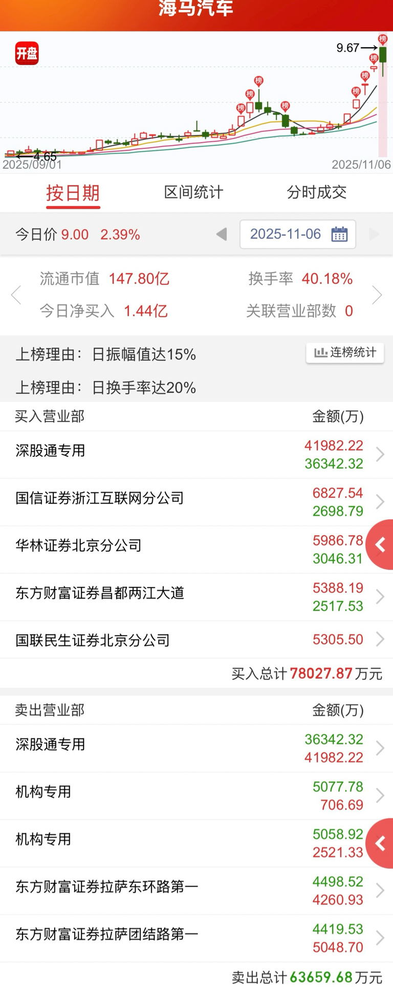 $海马汽车(SZ000572)$ 龙虎榜出来,有没有课代表