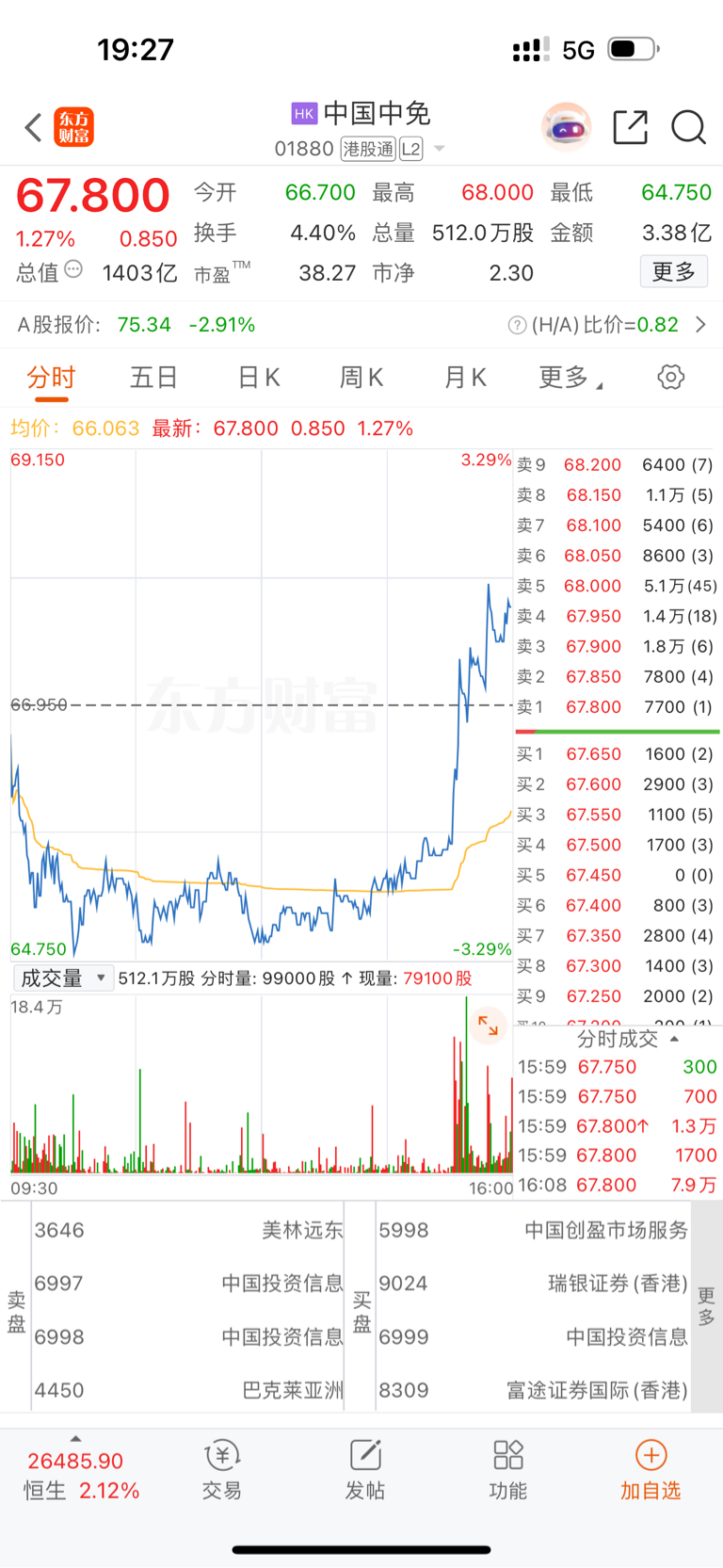 $海马汽车(SZ000572)$ 这是你们说的港股中免的走势,很牛逼吗?