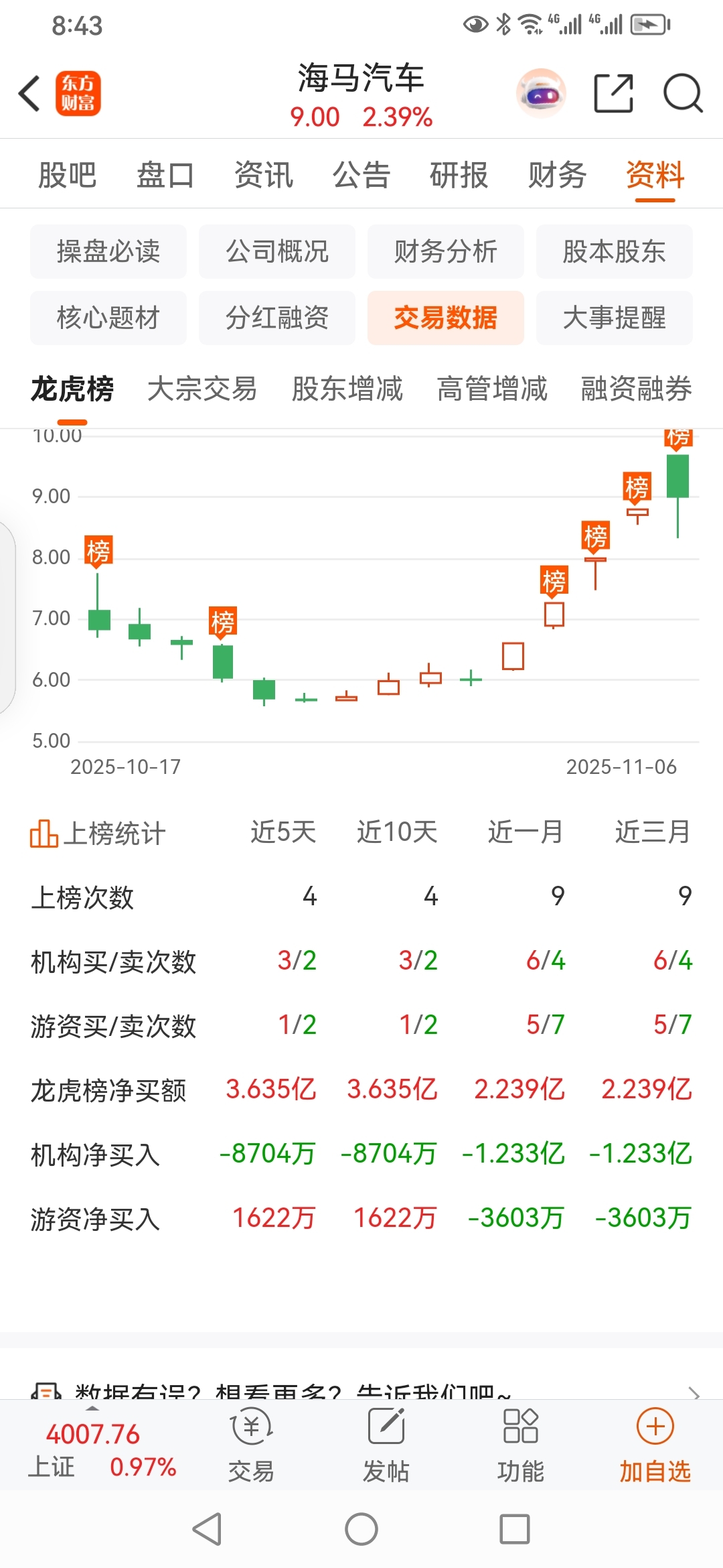 军哥,龙虎榜,海马汽车。
